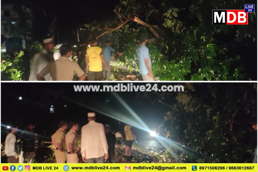 ಮೂಡುಬಿದಿರೆ : ಬಂಟ್ವಾಳ – ಮೂಡುಬಿದಿರೆ ರಾಜ್ಯ ಹೆದ್ದಾರಿಯ ಮೇಲೆ ನಿನ್ನೆ ತಡರಾತ್ರಿ 11:30ರ ವೇಳೆಗೆ ಪ್ರಾಂತ್ಯ ಗ್ರಾಮದ ಮಿಜಾರ್ ಫ್ಯೂಯಲ್ಸ್ ಪೆಟ್ರೋಲ್ ಪಂಪಿನ ಬಳಿ ಹೆದ್ದಾರಿಗೆ ಅಡ್ಡವಾಗಿ ಮರವೊಂದು ವಿಪರೀತ ಗಾಳಿ-ಮಳೆಗೆ ಧರೆಗೆ ಉರಿಳಿತ್ತು.