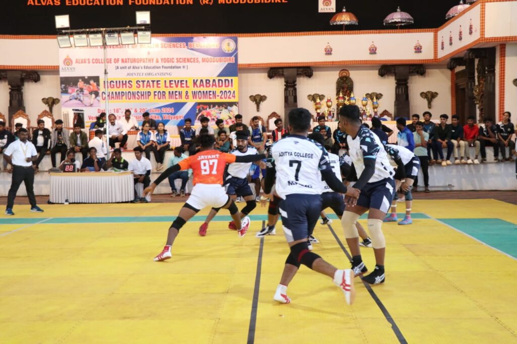 ಮೂಡುಬಿದಿರೆ : ಆಳ್ವಾಸ್ ಪ್ರಕೃತಿ ಚಿಕಿತ್ಸೆ ಮತ್ತು ಯೋಗ ವಿಜ್ಞಾನ ಕಾಲೇಜಿನ ಆತಿಥ್ಯದಲ್ಲಿ ರಾಜೀವ್ ಗಾಂಧಿ ಆರೋಗ್ಯ ವಿಜ್ಞಾನ ವಿವಿ ವತಿಯಿಂದ ಮೂರು ದಿನಗಳ ಕಾಲ ವಿದ್ಯಾಗಿರಿಯ ಕೃಷಿಸಿರಿ ಸಭಾಂಗಣದಲ್ಲಿ ನಡೆಯುವ ಪುರುಷರ ಮತ್ತು ಮಹಿಳೆಯರ ವಿಭಾಗದ ರಾಜ್ಯಮಟ್ಟದ ಕಬಡ್ಡಿ ಚಾಂಪಿಯನ್ ಶಿಫ್ ಮಂಗಳವಾರ ಆರಂಭಗೊಂಡಿತು.