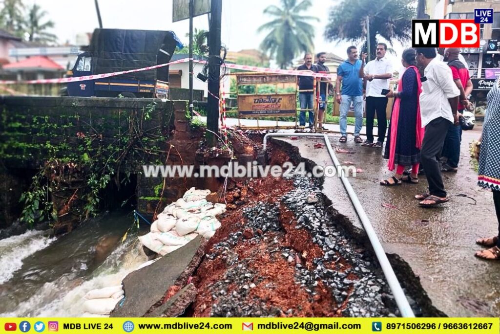 ಮೂಡುಬಿದಿರೆ ಬಡಗು ಬಸದಿ ಬಳಿಯ ರಸ್ತೆ ಅಂಚಿನ ಮಣ್ಣು ಕುಸಿತಕ್ಕೊಳಗಾಗಿ ಅಪಾಯಕಾರಿ ಸ್ಥಿತಿಯಲ್ಲಿರುವ ಸೇತುವೆ ಹಾಗೂ ವಿವಿಧ ರೀತಿಯ ಹಾನಿ ಪ್ರಮಾಣಗಳನ್ನು ಶಾಸಕರಾದ ಉಮಾನಾಥ ಎ. ಕೋಟ್ಯಾನ್ ಪರಿಶೀಲಿಸಿದರು.