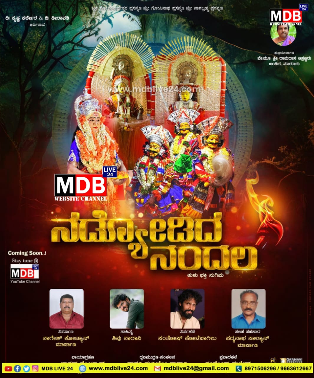ನಡ್ಯೋಡಿದ ನಂದಲ ತುಳು ಭಕ್ತಿ ಸುಗಿಪು ಅತೀ ಶೀಘ್ರದಲ್ಲಿ ನಿಮ್ಮಎಮ್ ಡಿಬಿ ಯೂಟ್ಯೂಬ್ ಚಾನೆಲ್ ನಲ್ಲಿ ಬಿಡುಗಡೆಗೊಳ್ಳಲಿದೆ.